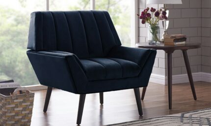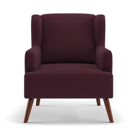 This contemporary arm chair, which oozes mid-century design, features soft, comfy seats covered in a tough, easy-to-clean polyester fabric. Walnut-finished