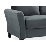 This charming stationary sofa with curved arms from the collection is the ideal place for family, friends, or random strangers to relax and recharge. The hardwood frame offers the best protection against any bouncing or shaking that furniture may experience. The luxurious Dark Gray cloth upholstery adds comfort and sophistication to your living room.