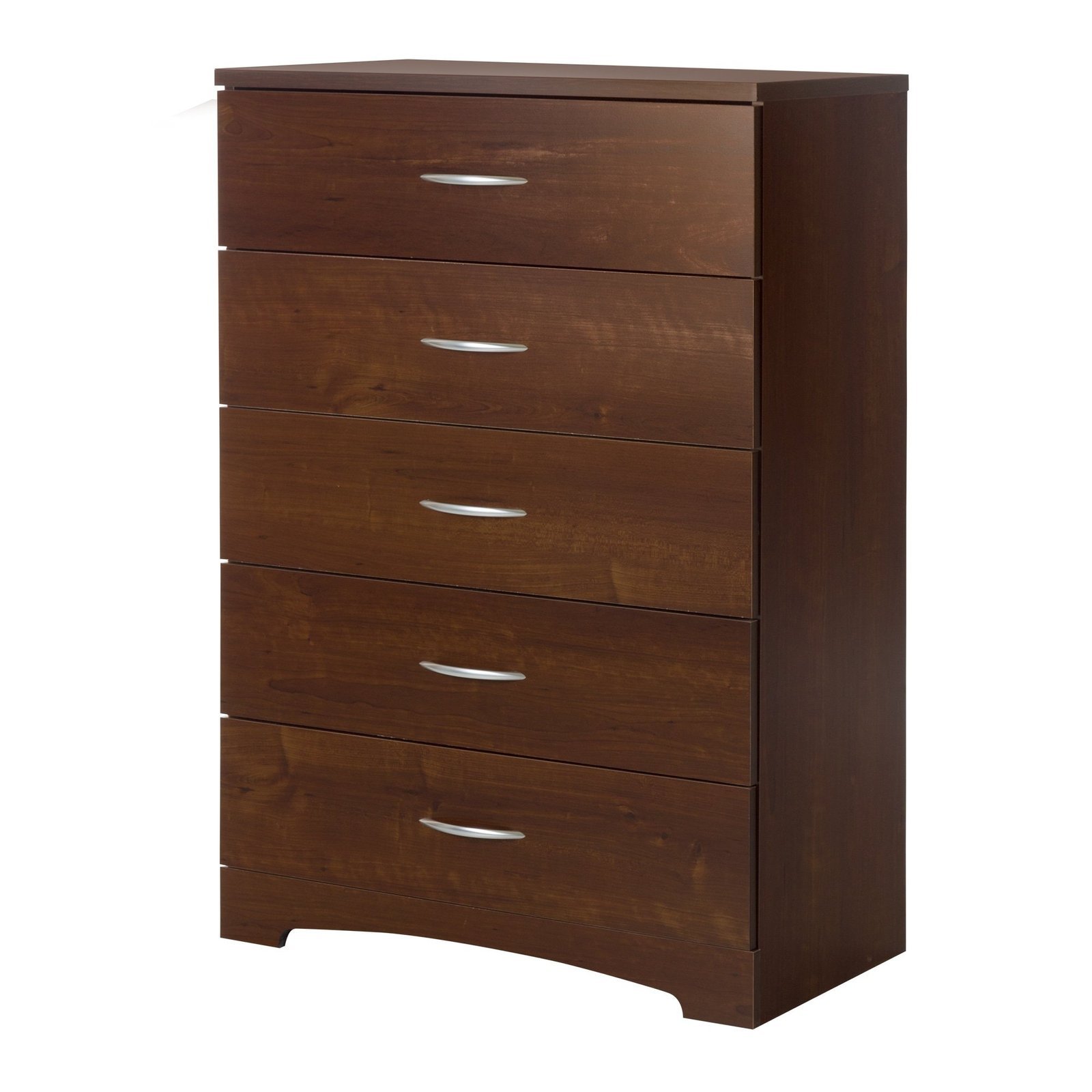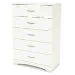 With this South Shore Step One five-drawer chest, you may increase the amount of clothes and linen storage in your bedroom. There are five drawers in this compact chest, each with strong, high-quality metal knobs. Plywood was used to build this cabinet.