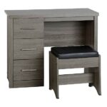The Lennon 3 Drawer Dressing Table Set is a part of the Lennon collection, which is stylish, functional, and inexpensive. Both classic and modern households may use the light oak veneer or black finish, which also has enough of storage space. The seat pad made of imitation leather is comfortable as well.