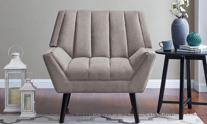 With the help of this armchair, relax. Each item draws inspiration from mid-century contemporary designs and is supported by four splayed legs that have a warm medium cherry finish. Each item is made with a sturdy rubberwood frame, foam padding, and upholstery in a single color polyester blend. The chair’s back features several exquisite tufting elements.