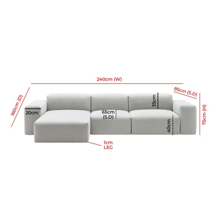 • Overall Dimensions: 240cm W x 160cm D x 75cm H