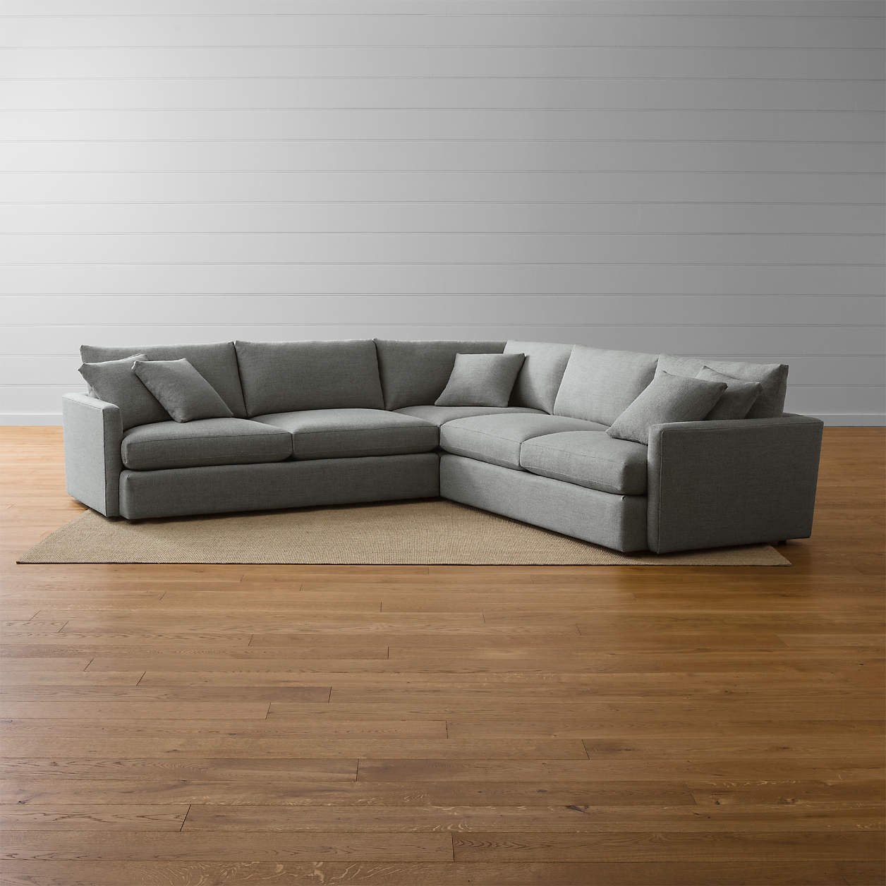 The three-piece sectional sofa consists of a right-arm sofa, a corner, and a left-arm sofa. It has super-deep, low seats and super-soft back pillows that encourage family members to cuddle up. Modern track arms with slim, sleek lines make it simple to use and maximizes your sitting area. This makes it ideal for watching movies or binge-watching your favorite TV series.