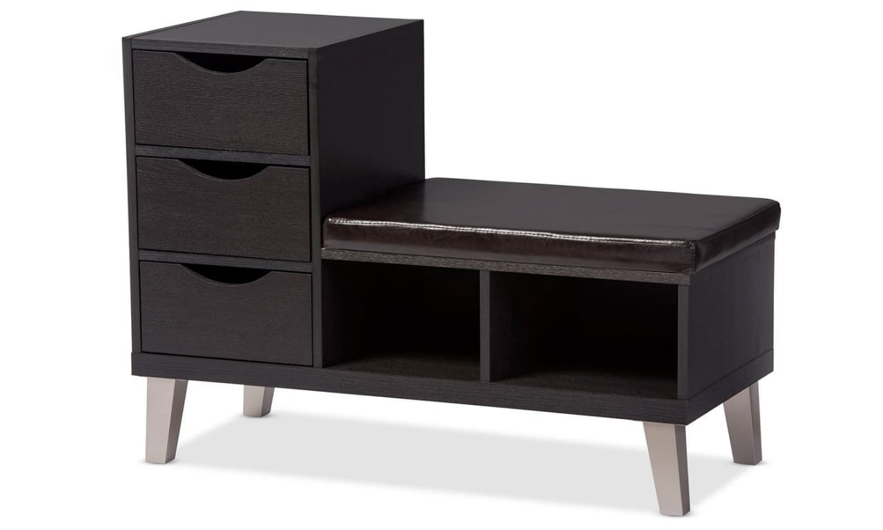 Your bedroom would benefit greatly from having this bench. This bench has a modern design and is made of MDF with an espresso brown finish. When raised open, the padded cushion offers a cozy lounging area and lots of storage space.