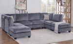 We will not mind if you spend your free time relaxing on this sectional sofa. It is luxurious, fashionable, and adaptable, allowing you to create your ideal retreat however you want. You can arrange the ottomans on this modular sectional however you want to suit your comfort needs. This sectional, with tapered block feet and premium polyester velvet upholstery, exemplifies style versatility and will perfectly match your room.