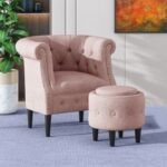 The button-tufted linen fabric armchair and ottoman exude a feeling of classic modern vintage ageless design. An inviting nail head finish and well crafted wooden legs give this chair its genuine appeal, making it ideal for home dƩcor.