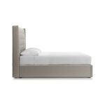 Our sleek, tall modern bed blends traditional and contemporary design elements to complement a variety of bedroom themes. It also has a hint of wingback styling. Expertly fitted in fabric or linen, the headboard has classic nailhead trim and button tufting. Emulating the headboard’s aesthetically pleasing lines.